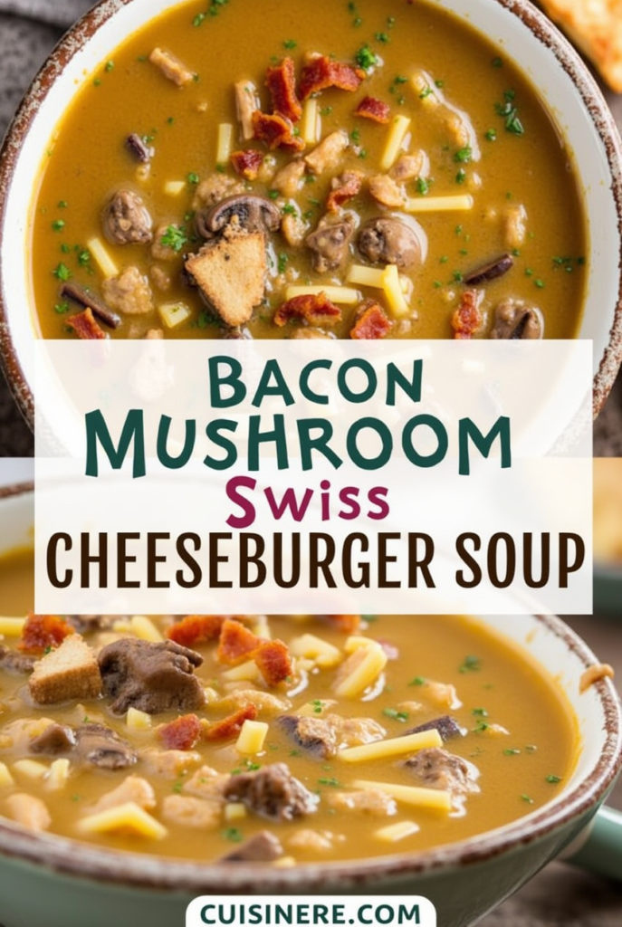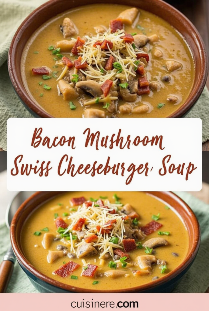 Bacon Mushroom Swiss Cheeseburger Soup is a decadent, creamy, and flavorful dish that transforms your favorite burger into a spoonable masterpiece. Perfect for cozy evenings or entertaining guests, this soup is sure to impress. Give it a try and savor the gourmet comfort it delivers!