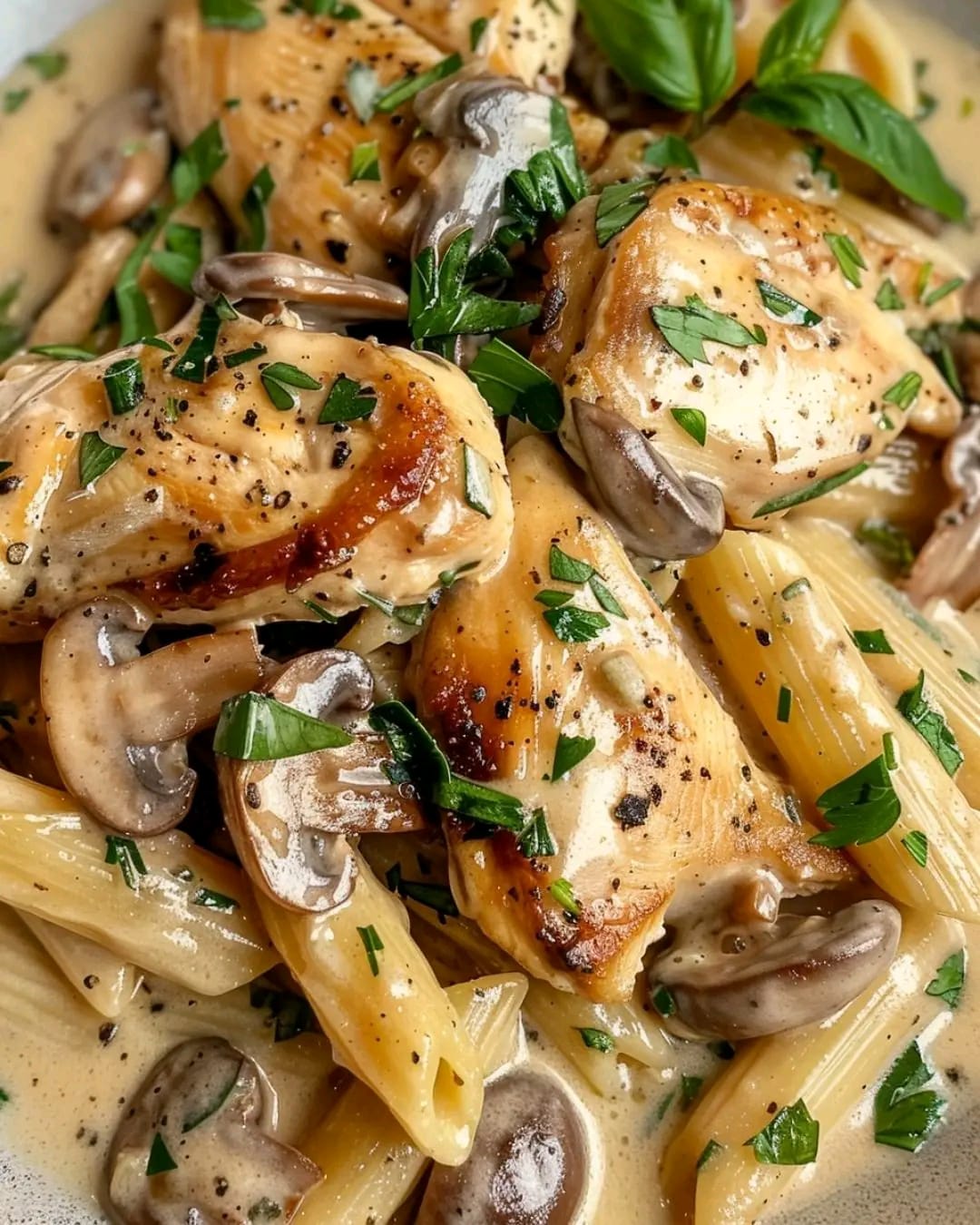 Pasta with Chicken and Mushrooms in Creamy Sauce – A Comforting Classic for Every Occasion