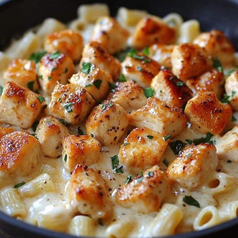Garlic Butter Chicken Bites with Creamy Parmesan Pasta