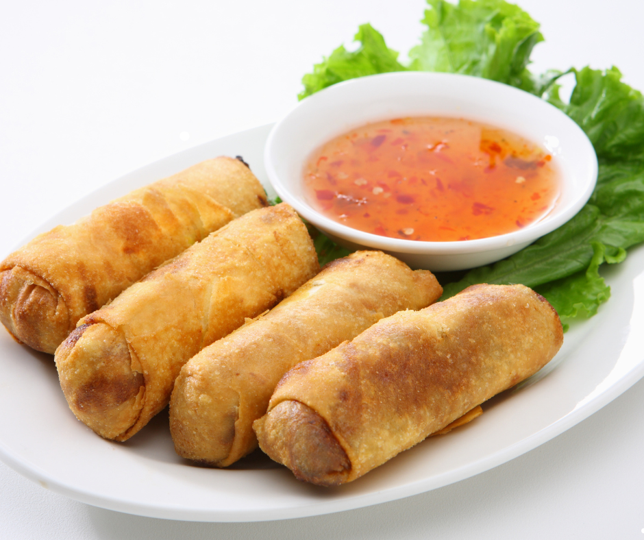 • While these egg rolls are fried, using lean beef and serving them with a fresh side salad or vegetable can balance the meal.