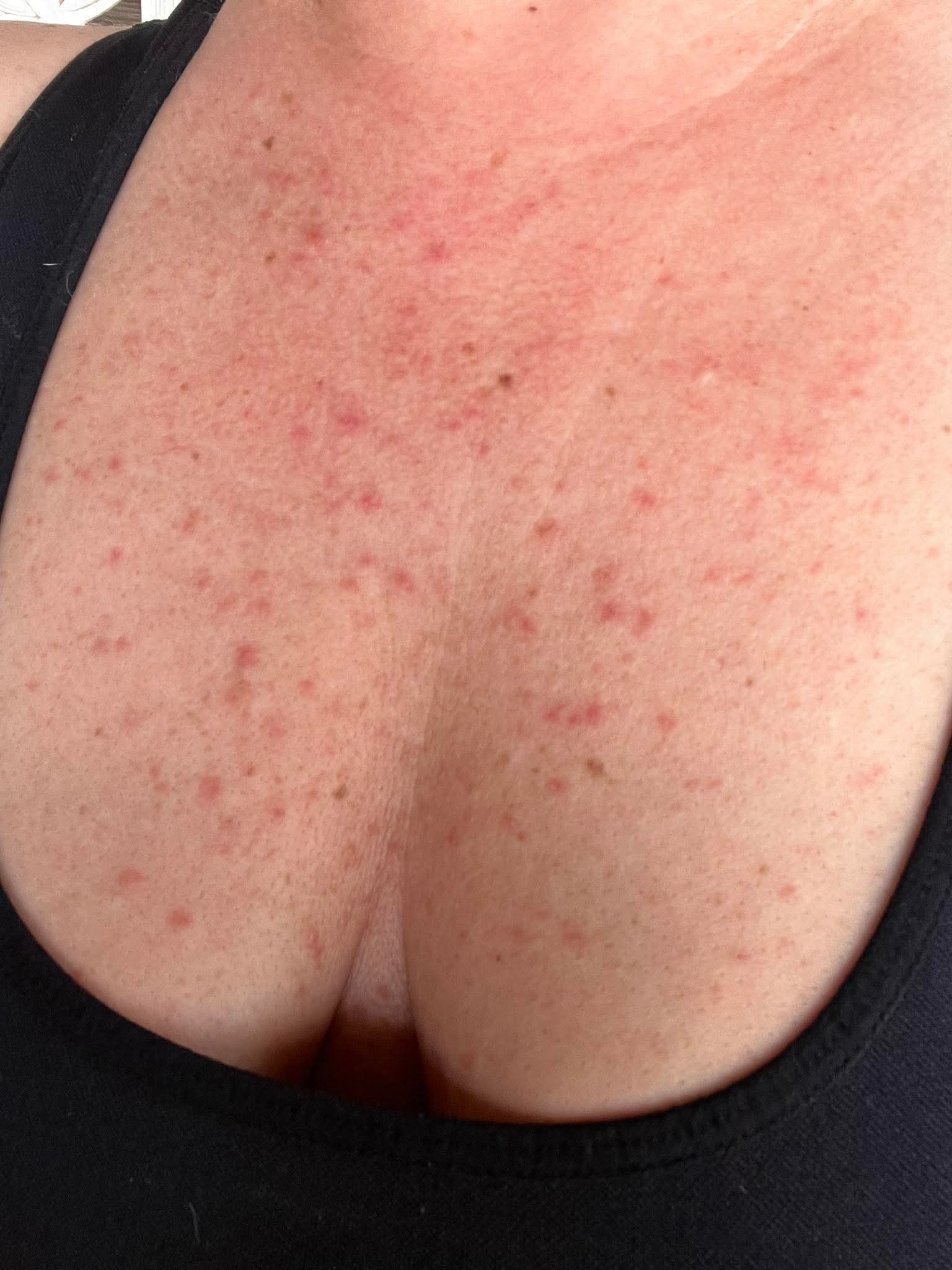 If you have a persistent rash on your chest that hasn’t improved after using antifungal wash, glycolic acid, or hydrogen peroxide, it’s important to pause and reassess. In many cases, these products can actually worsen skin irritation instead of healing it.