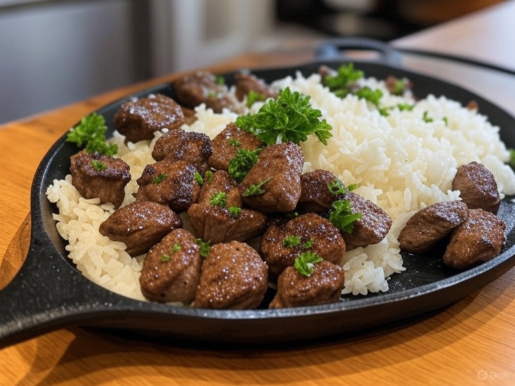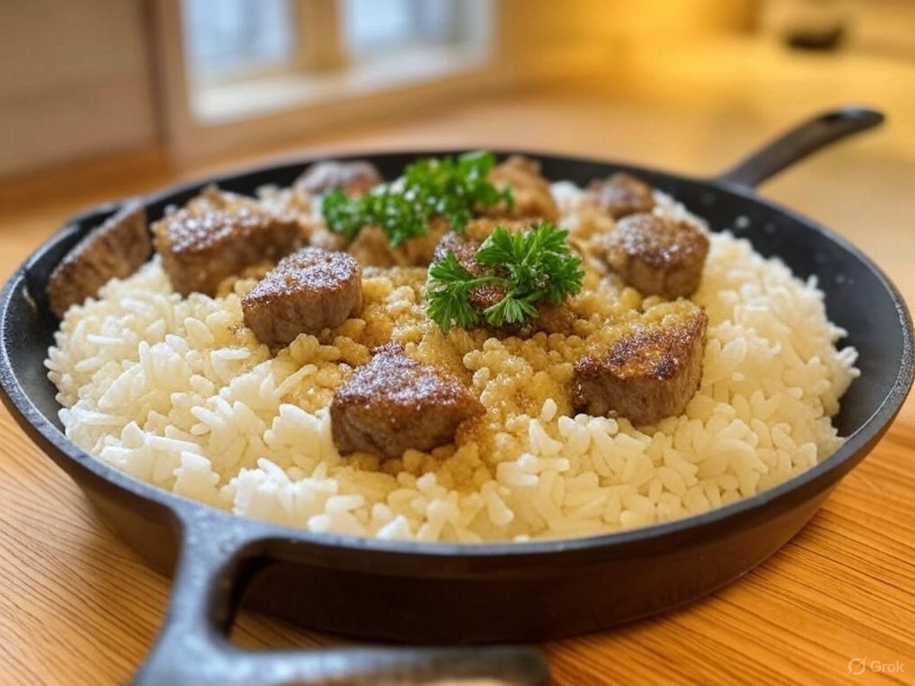 Looking for a quick and flavorful one-pan meal? This Savory Garlic Butter Steak and Rice is the perfect choice! Juicy, seared steak bites cooked in a rich garlic butter sauce and paired with tender, flavorful rice make this dish a must-try for busy weeknights or special occasions.