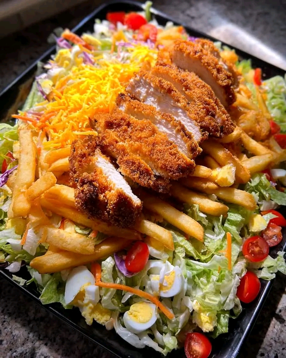 Crispy Chicken Loaded Fries Salad Bowl ππ
